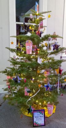 We also enjoyed taking part in the first-ever Christmas Tree Decorating Contest at the Carnegie Library—such a fun team effort and a memorable way to connect with our neighbors. The beautiful Theatre themed tree is shown below (click/tap for larger view).