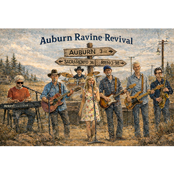 Auburn Ravine Revival, voted Auburn’s “Best of the Best Band” for 2024 and 2025, will play a concert and host a CD release party as a FUNDRAISER for Auburn State Theatre. This beloved grassroots band offers a captivating mix of Classic Rock, Blues, and their own unique twist on Americana.